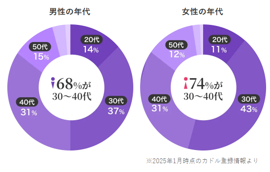 カドルは累計会員数90万人突破、累計マッチング数1,000万組突破の既婚者専用マッチングアプリです。