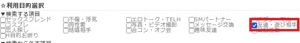 浮気相手を探す際は、絞り込みで「遊び相手」にチェックを入れて検索してみてください。