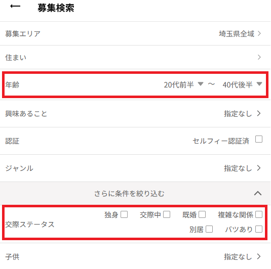 なお、オープンマリッジの相手を探す際は、掲示板検索項目も少しいじるのがおすすめ。