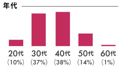 女性の登録している年齢層は、30代後半から50代が中心です。