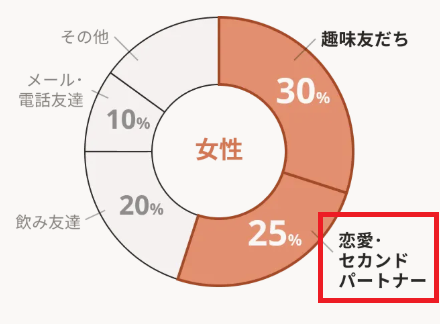恋愛やセカンドパートナー目的で登録している女性も多いので、オープンマリッジの相手探しに適しています。