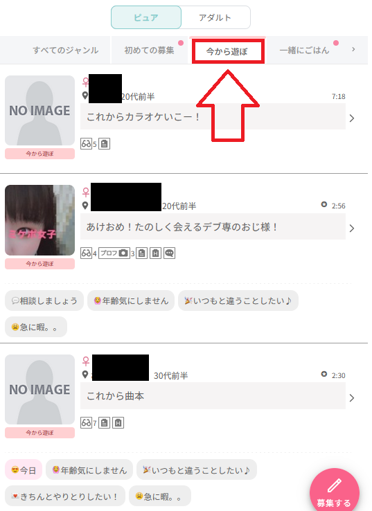 フットワークの軽い女性が募集しているので、即会いしやすい機能になります。