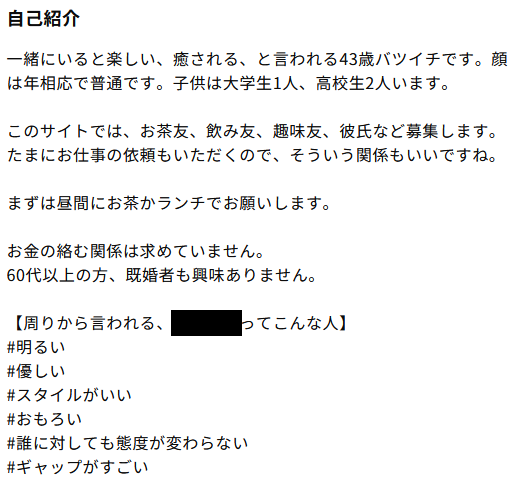 一方で真剣な女性になると、長文の自己紹介文を掲載することが一般的。